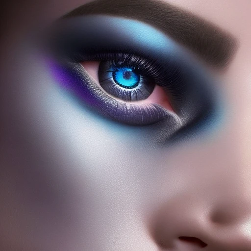 a close up of a woman with a blue eye shadow on her face, official dior editorial, trending on pintrest, very smoky, dreamy, stunning gradient colours, transforming into werewolf, aesthetic! ! ! ! ! ! ! ! ! ! , closed-eyes, pretty oval face, inspired by Muqi, trending on tumblr, no spot over right eye --ar 3:5 --stylize 750 --v 6. 0 --style raw