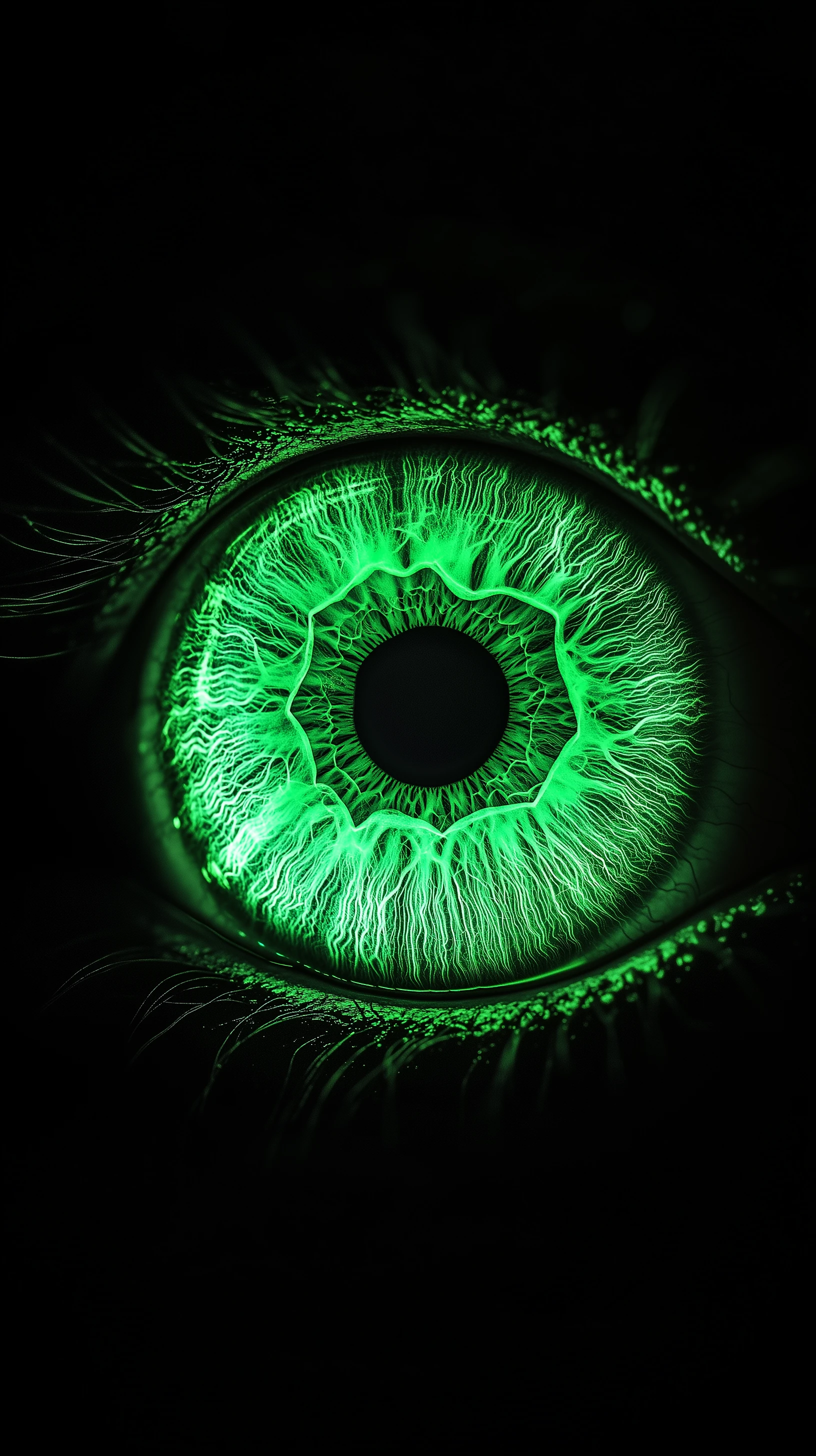 green x-ray, eye, macro-shot, black background, realistic, rich detailing --ar 9:16 --style raw --v 6. 1
