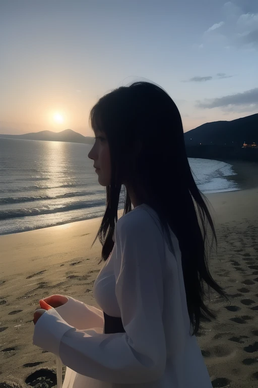 a girl in the beach, with a great view of the beach, an aphrodisiac and virgin beach, where you can see its beauty, 4k, 8k, photorealistic, hyperrealistic, z1l4, bul4n, flash, flashlight