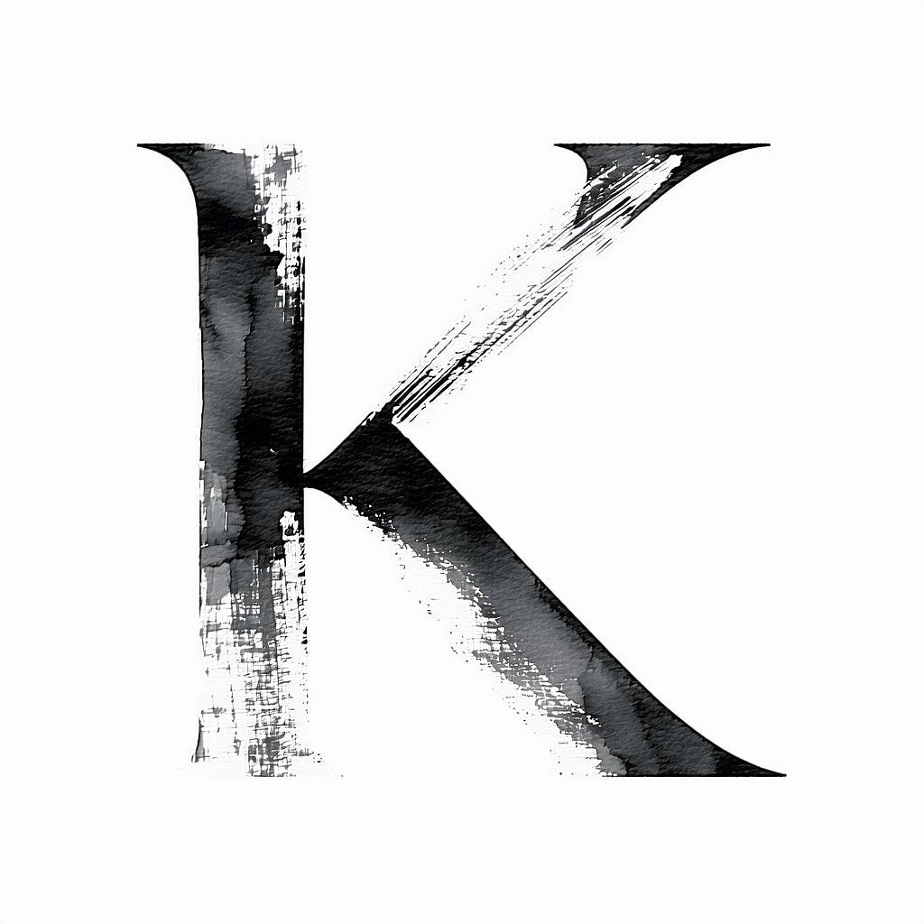 Create a delicate, abstract line drawing with a single continuous stroke. The composition should resemble a freeform cursive or gestural sketch, flowing with elegance and minimalism. Incorporate a subtle hint or echo of the uppercase letter K within the shape — it should not be obvious, but perceptible on closer inspection. Use black ink on a soft white or pale grey background. The lines should be thin, scratchy, expressive, and slightly imperfect, like ink on textured paper or film scratches. No shading, color, or background elements — just the pure linework, centered with lots of negative space.