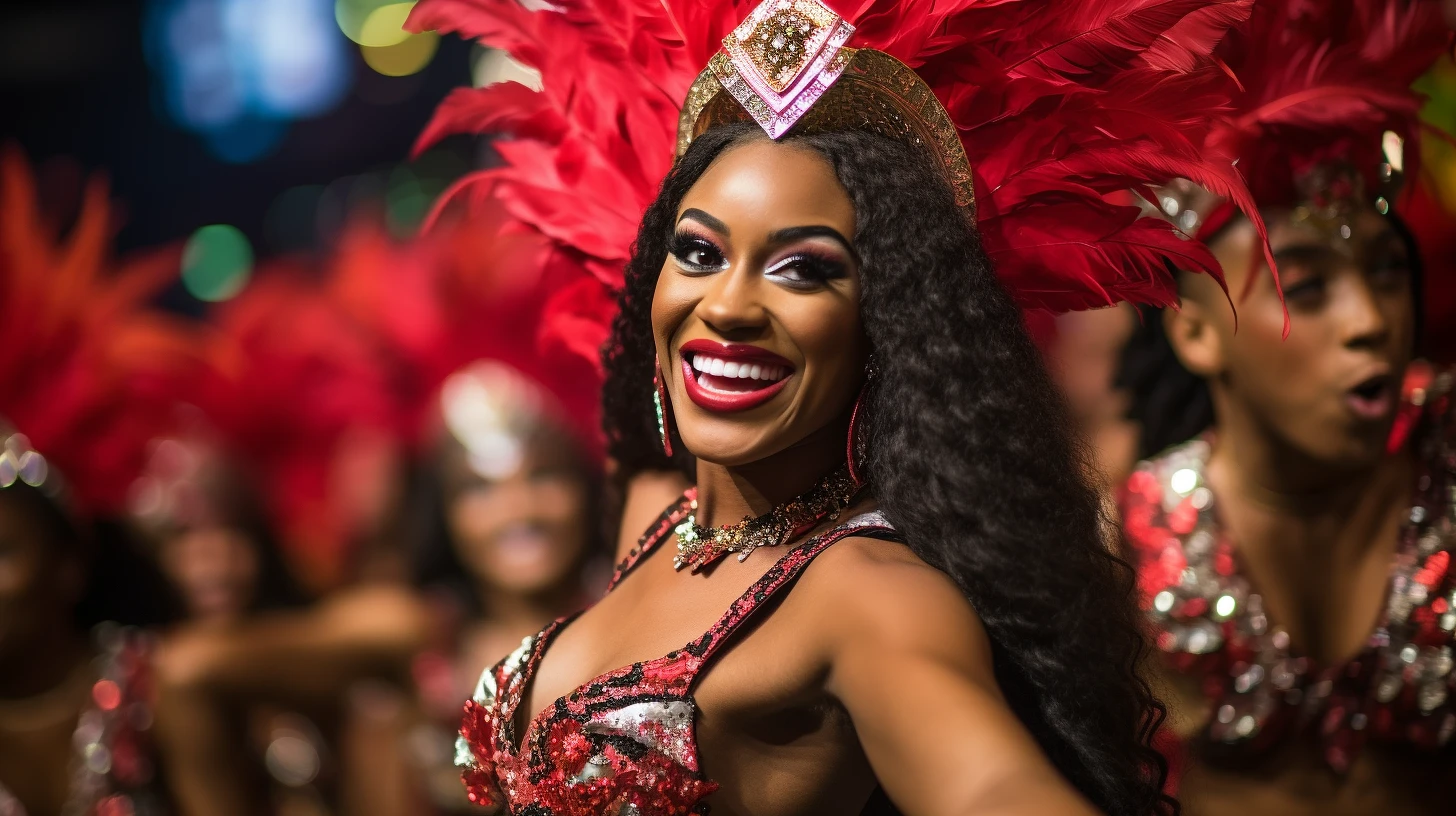 award - winning photograph, gorgeous rio's carnival percussionists and samba dancers, full body figures, men and women, dynamic poses, dancing, movements, dynamic shots, carnival samba parade in background, photograph captured using a Canon 6D Mark II with an 85mm lens at f/ 4 and ISO, Kodak Ultramax 400, glamour shot, detailed skin texture, sharp focus, perfect light, colours, glitters --ar 16:9 --repeat 4 --q 2 --v 5. 2