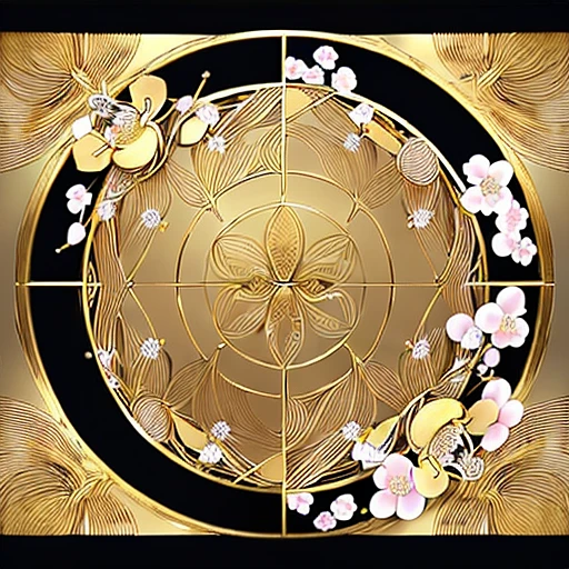 A cool and elegant brand logo featuring two golden, intertwined circles in metallic gold with a luxurious art deco appearance. Inside the circles, delicate cherry blossoms and other Japanese flowers are outlined with detailed nerves in the petals and leaves, flowing with organic lines to symbolize beauty and harmony. Each flower should be outlined with intricate details, showcasing the nerve-like patterns in the petals. This adds depth and sophistication to the design. Use organic, flowing lines to connect the flowers, creating a sense of harmony and movement The background has intense watercolor splashes in pastel shades of blue, pink, and lavender, creating an ink-washed effect. At the bottom, the text 'Erika Rufo PSYCHOLOGIST' is written in a clean, modern font, dark in color to stand out against the pastel background, complementing the graceful floral design. Choose a clean, modern font for the text.