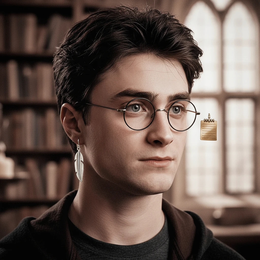 harry potter, one piece of metal feather pen silver color earring, one piece of retangular note gold color metal earring