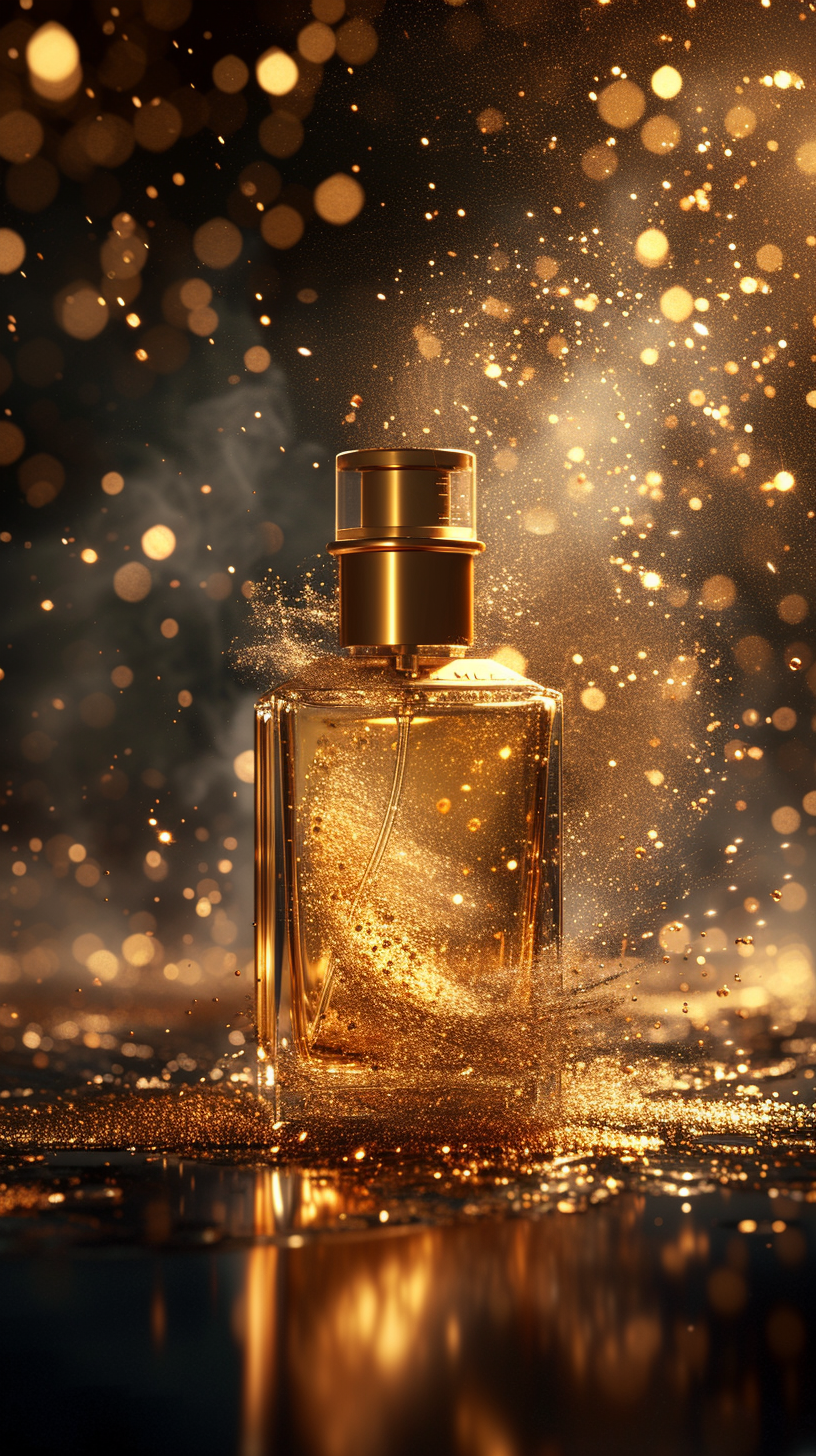 Midjourney prompt: Commercial photography, powerful explosion of gold...