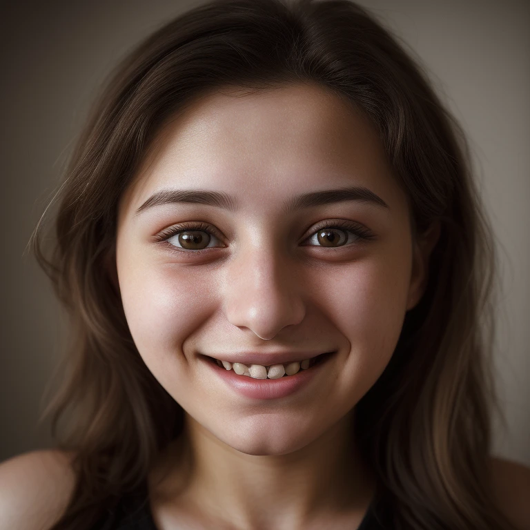 hyper realistic headshot photo of a 20 year old, jewish girl, looking into the camera, smiling slightly, ultrarealistic, soft lighting, 8k