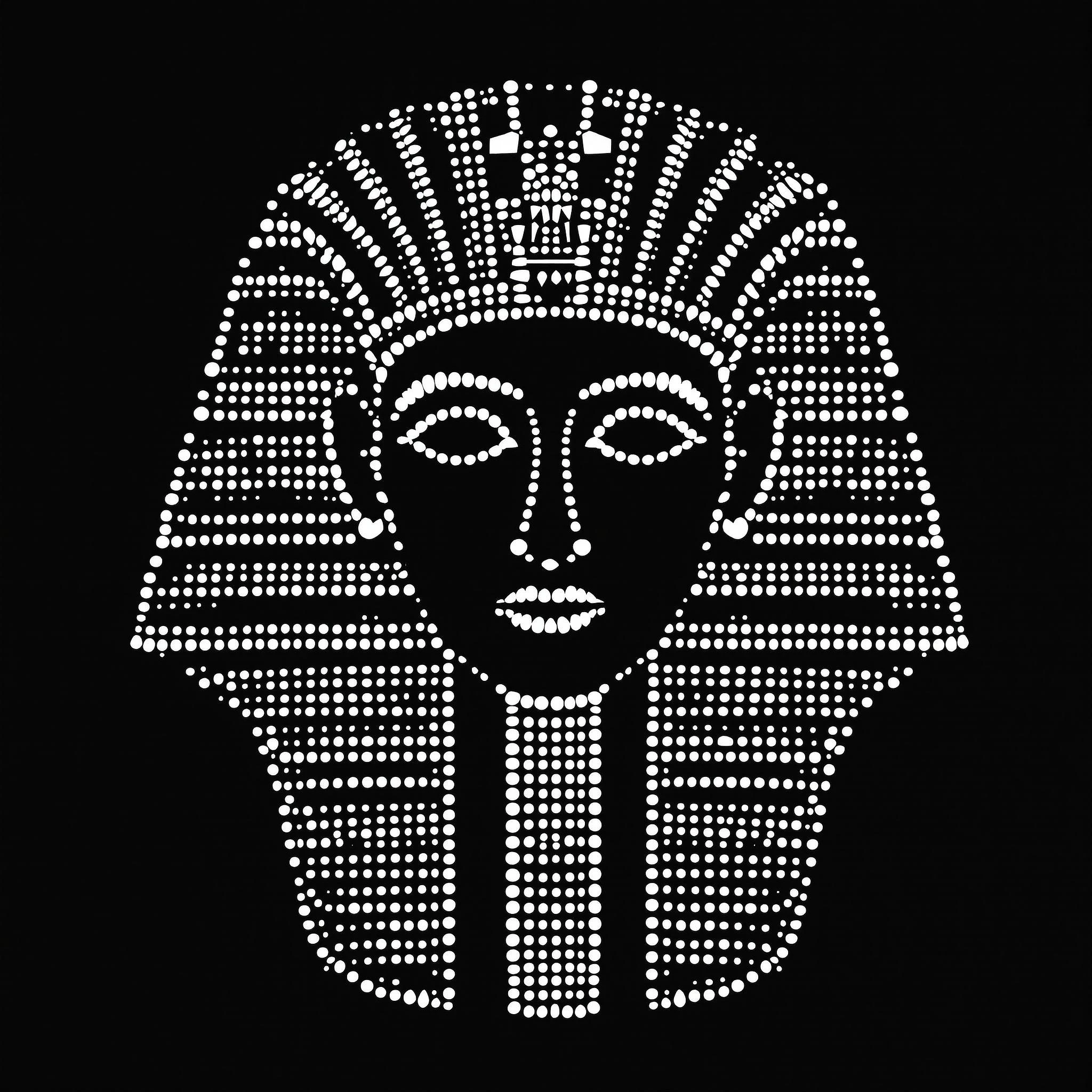 "Simple white dots forming the shape of King Ramses' face, flat design, vector illustration, on black background, Egyptian-style shapes and lines, hieroglyphic-inspired style --ar 9:16 --style raw. "