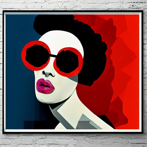geometric abstract portrait of Bride of Frankenstein, bright vibrant colorful, poster art, shephard fairey --aspect 3:4