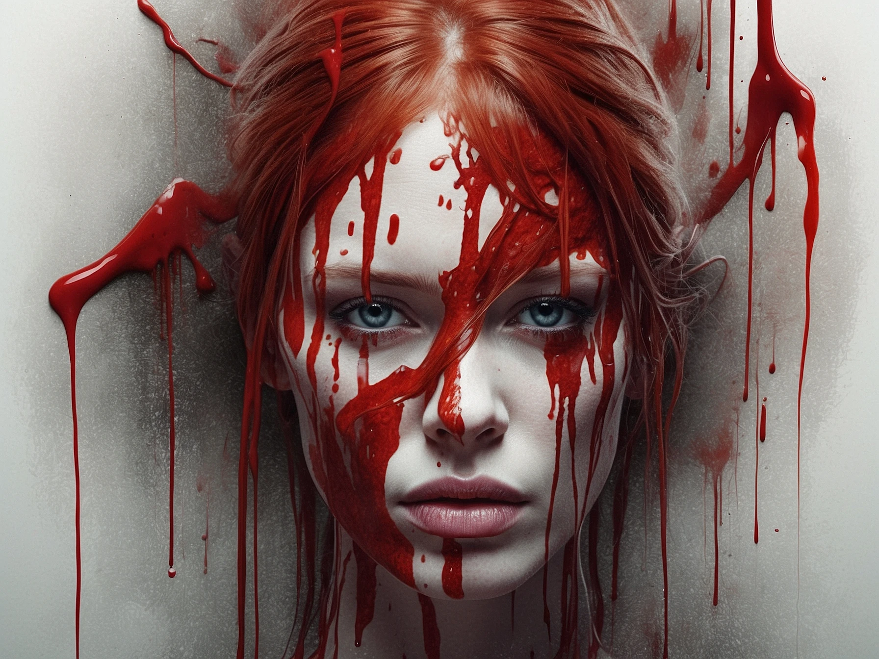a painting of a woman with blood dripping all over her face, a photorealistic painting by Gottfried Helnwein, behance, gothic art, behance hd, dye-transfer, zbrush