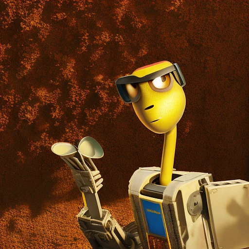 WALL·E with flower. cinematic lighting, volumetric rays, moody, wet, dripping mud --ar 2:3 --s 750