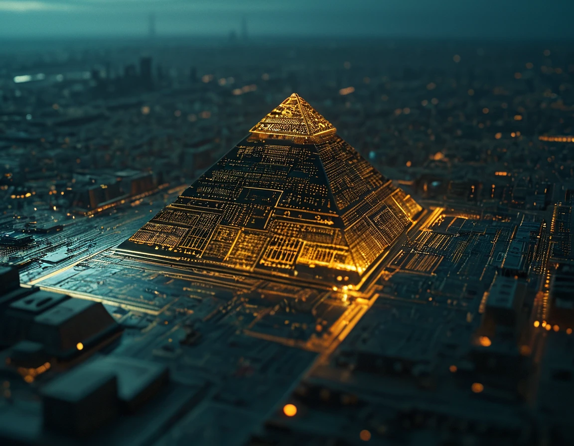 circuitboard, Great Pyramid of Giza, focus, motherboard, technological, shot from above, intricate, elegant, highly detailed, colorful, intense light, professional, innocent, mystical, dramatic, sharp, artistic, true colors, inspired, brilliant, beautiful, epic, cinematic, fine detail, pretty, clear, attractive, creative, positive, pure, rational, vibrant