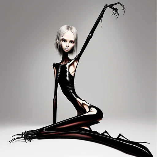 extreme skinny slender anorexic girl very skinny slender girl, with long curved claws, skinny legs in high heels , lying position