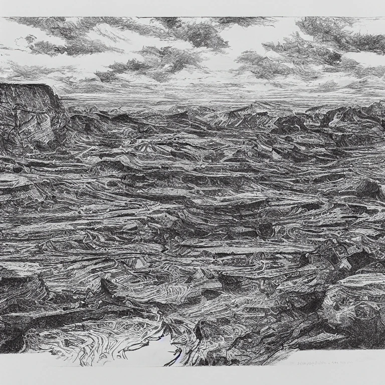 black and white etching, black ink drawing, of a stunning city of stone inside a gray granite canyon, in the style of patten wilson
