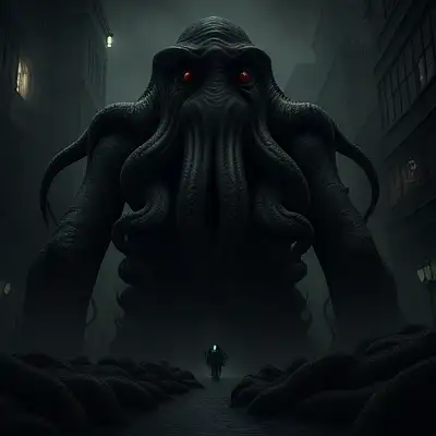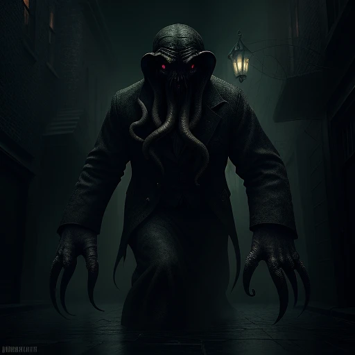 cthulhu, gloomy, scary, textured, shadowy, in the style of hp lovecraft, old city, 35mm photography, hyper-realistc, high detail, artstation, rendering by octane, unreal engine 5 --ar 3:5 --q 2