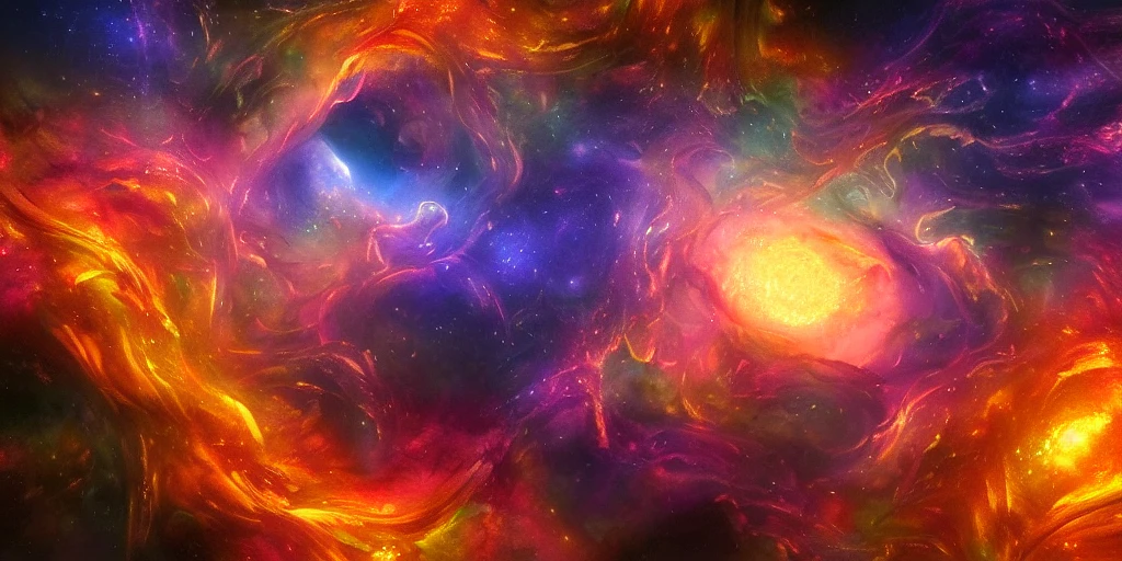 raytraced render and digital painting a scene of complete madness, by kinkade, cosmic entities, celestial, cosmic, luxury, elegant, ornate, vibrant and vivid, smooth, soft billowing smoke, darkness, bright, heavenly, elegant, swirls, cosmic flower, nebula vines, omnious nebula tree, twirling, billowing, cinematic, unrealistic, high contrast, hdr, 4 k, artstation, cgsociety, unreal engine, symobolism, magical, mystical, mystifying, obscure, perplexing, zbrush, octane, hyperrealistic, bokeh, dof