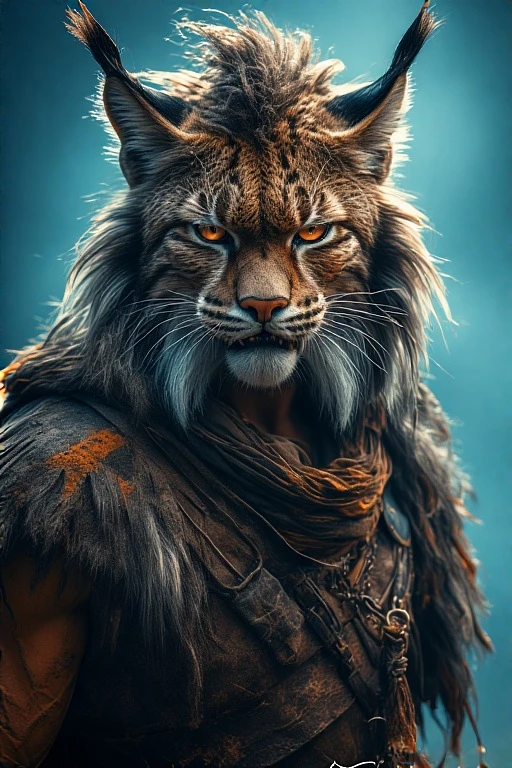 portrait of a lynx man, gardener of dragonkind, vibrant color grading, epic fantasy