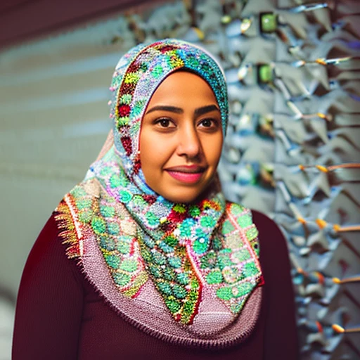 commercial photoportrait hijabi insragram model, covered in diamonds, bright colors, sun-soaked colours, Fujifilm X-T4, Sony FE 85mm --ar 900:1600 --s 750 --style raw --v 5. 2