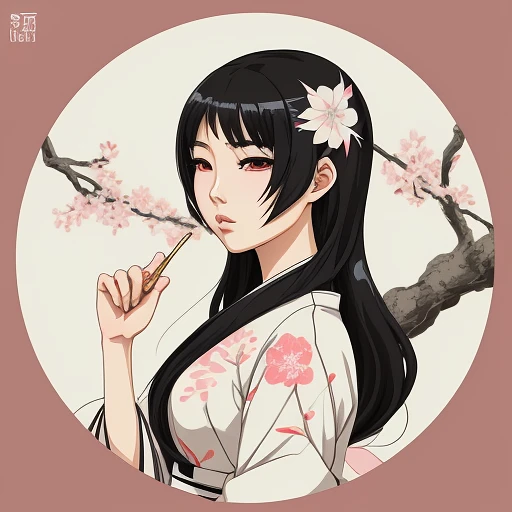 asian woman, ilustration, in the style of anime aesthetic, hand-painted details --ar 73:128 --stylize 750