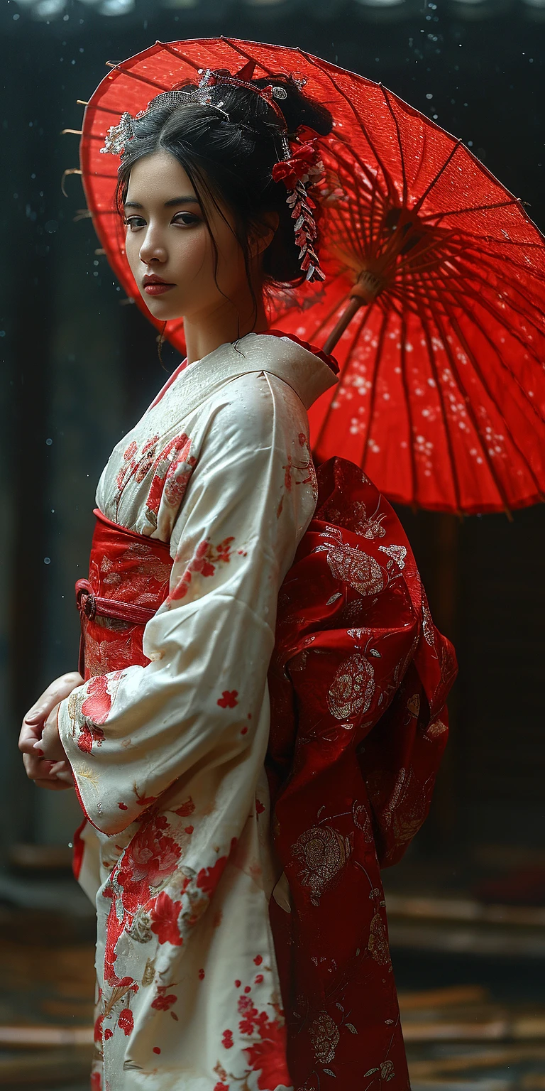 japanesian geisha beautiful image wallpaper, in the style of joel robison, light white and dark crimson, samyang af 14mm f/2. 8 rf, classical figurative realism, 500–1000 ce, sculpted, anime-influenced --ar 1:2 --stylize 750 --v 6