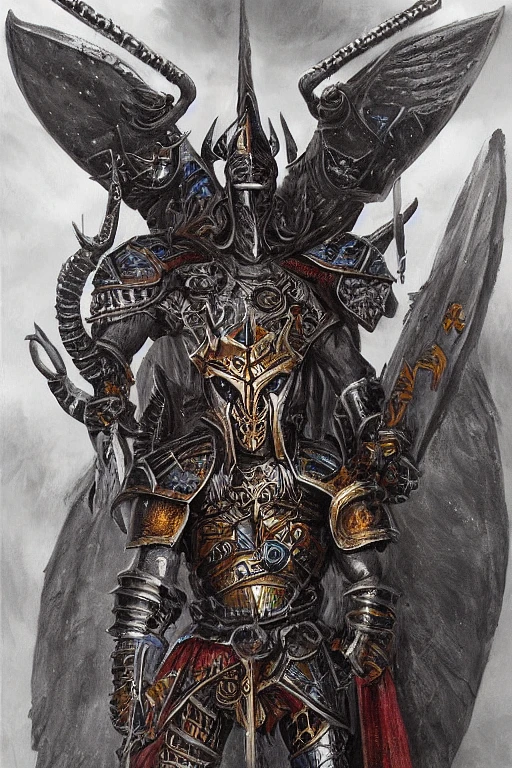 full body concept art of Aztec knight wear baphomet armor made with porcelain by Jeff Easley and Peter Elson + beautiful eyes, beautiful face + symmetry face + galaxy + gothic, surreal, dread + highly detailed, intricate complexity, epic composition, magical atmosphere + masterpiece, award winning + trending on artstation