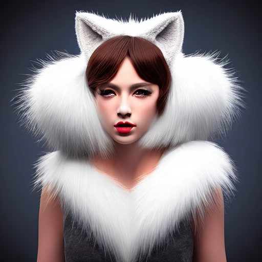 studio photo, female beautiful face Furry girl with perfect body full height cat ears fluffy tail photo realistic ultra-detailed, ultra realistic, ray-tracing, reflections, cinematic light, hdr, 8k