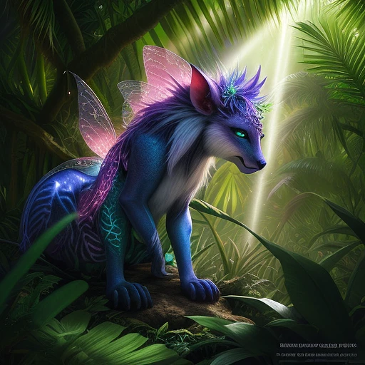 fantasy animal in the jungle, closeup, ultra detailed, fairy lighting, photorealistic, bright colors, volumetric rays of light, hdr. --ar 9:16