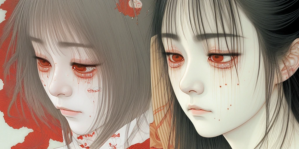 Woman crying, artwork by Takato Yamamoto and Chika Yamada, very detailed, realistic, hyperrealistic, detailed and hilarious background