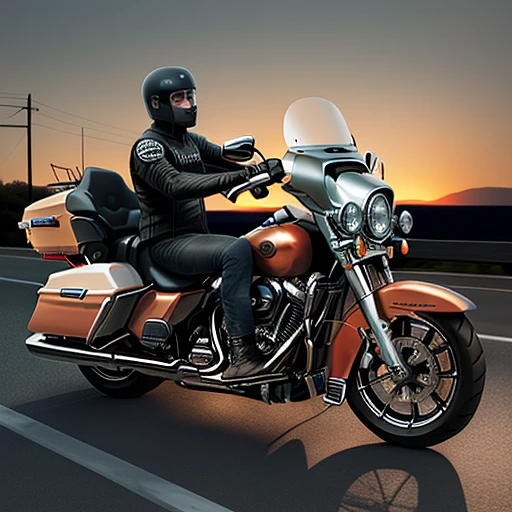 picture ultra realistic biker on a harley davidson motorcycle on the road 66 sunset side view --ar 4:6 --v 6. 0