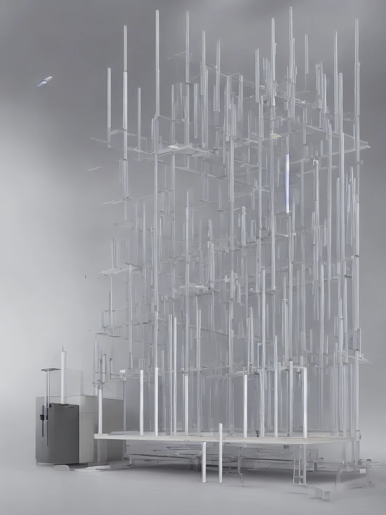 8k digital painting of a minimalist laboratory scene with two sleek, futuristic test tube racks. Each rack holds 2-4 test tubes, filled with subtly tinted liquids in pastel, watercolor-like hues. The test tubes are partially filled, and the racks are placed on a neutral white surface with no visible background. The composition should emphasize realism, with a dramatic yet clean aesthetic, focusing on the detailed and realistic appearance of the test tubes and racks