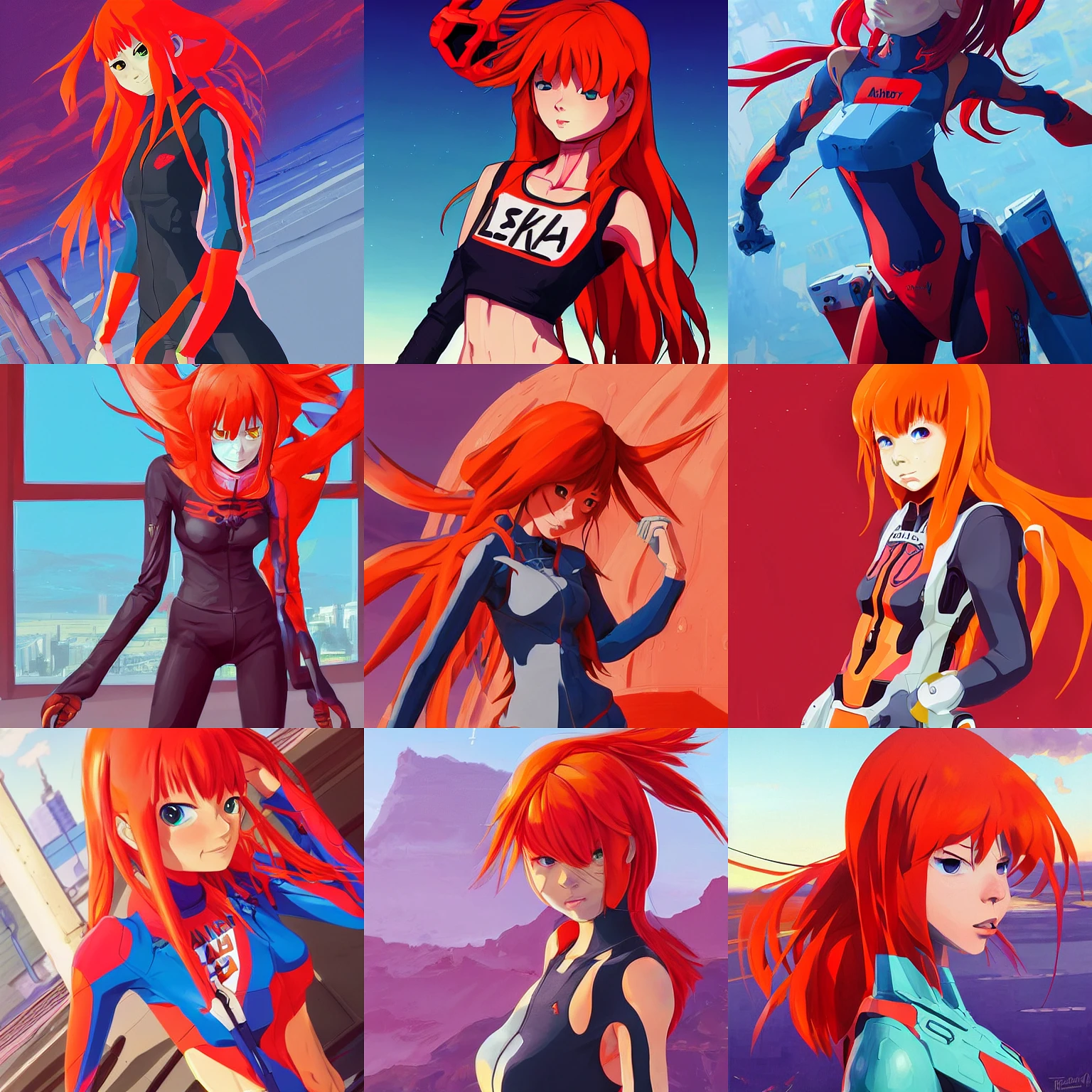 asuka langley, evangelion, gta 5 cover art, borderlands style, trending on artstation, by rhads, andreas rocha, rossdraws, makoto shinkai, laurie greasley, lois van baarle, ilya kuvshinov and greg rutkowski