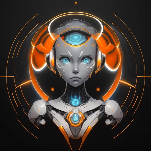 scifi fantasy illustration beautiful robot, in the style of pokemon hyper-detailed portraits, dark white and orange, classicist portraiture, dark gold and aquamarine, realist detail, hard edge, technological marvels --ar 68:128 --stylize 750 --v 5. 2