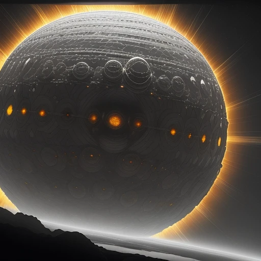 photo of A colossal, terrifying, and austere Dyson sphere, featuring two intersecting rings encircling a small, sun-like energy source, intentionally collides with a cylindrical space colony. The impact obliterates the colony instantly while the Dyson sphere remains intact. In the background, Earth is visible, a distant and serene reminder contrasting with the devastation unfolding at the colony