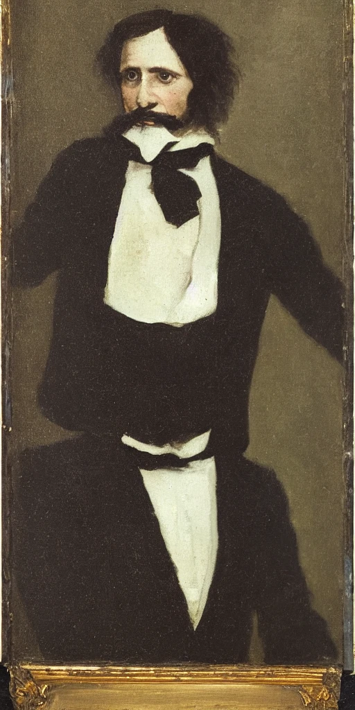 Concept art of a tux 1845s in the style of Gustave Courbet the desespere, aesthetic canon of proportion grunge and vintage and sci fi aesthetic::1, epic lighting, hyperdetailed, artstation, 8k, high resolution, burnt edges, golden ratio, analogous colors, minimalist::1 --uplight --no long neck --no long anatomy --no extra anatomy --no second face —ar 9:16