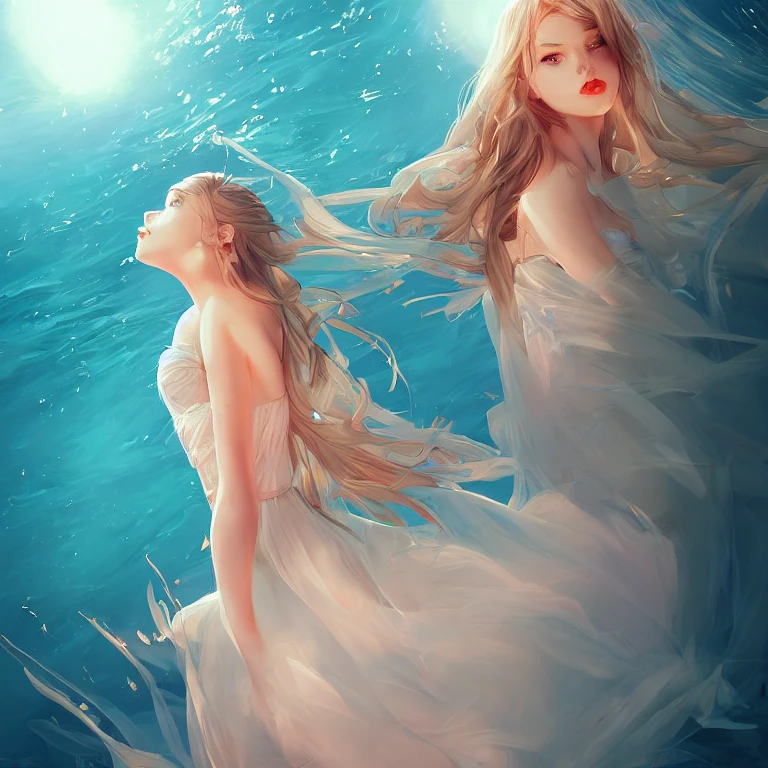 a beautiful fashion goddness of love, chic strapless dress, tropical sea background, character design, in the style of artgerm, and wlop, cinematic lighting, hyperdetailed, 8 k realistic, symmetrical, global illumination, radiant light, frostbite 3 engine, cryengine, dof, trending on artstation, digital art
