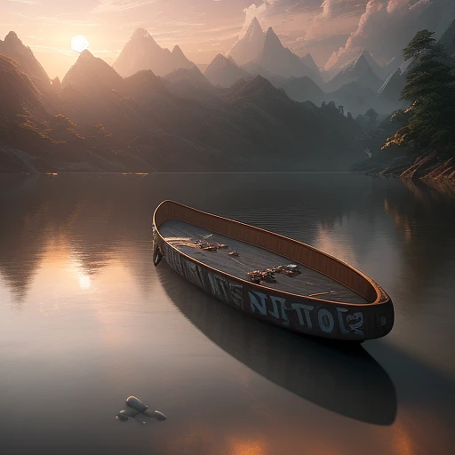 Photo of a ultra realistic skateboard raft Noah's ark, dramatic light, pale sunrise, cinematic lighting, battered, low angle, trending on artstation, 4k, hyper realistic, focused, extreme details, unreal engine 5, cinematic, masterpiece, art by studio ghibli, intricate artwork by john william turner