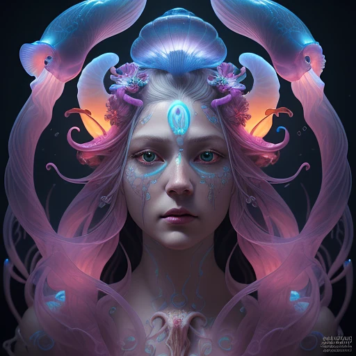 Goddess close-up portrait ribcagel. jellyfish phoenix head, nautilus, orchid, skull, betta fish, bioluminiscent creatures, intricate artwork . octane render, trending on artstation, t symmetrical artwork. cinematic, hyper realism, high detail, octane render, 8k