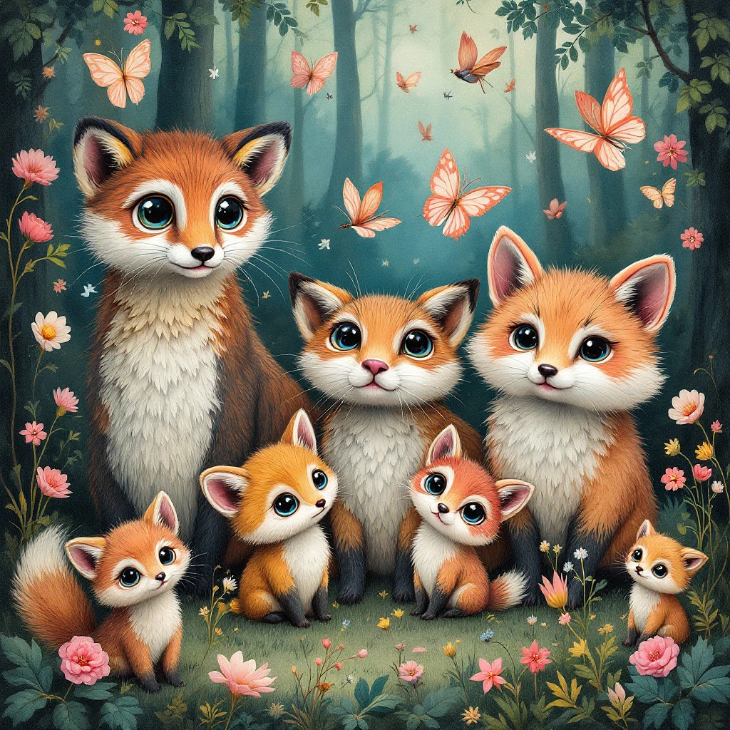 woodland animals, surreal, Nicoletta Ceccoli, (((Margaret Keane) )). kitsch 1960's cute, colorful, big clear eyes, full-body Art deco , ultra hd, realistic, vivid colors, highly detailed, UHD drawing, pen and ink, perfect composition, beautiful detailed intricate insanely detailed octane render trending on artstation, 8k artistic photography, photorealistic concept art, soft natural volumetric cinematic perfect light, ultra hd, realistic, vivid colors, highly detailed, UHD drawing, pen and ink, perfect composition, beautiful detailed intricate insanely detailed octane render trending on artstation, 8k artistic photography, photorealistic concept art, soft natural volumetric cinematic perfect light