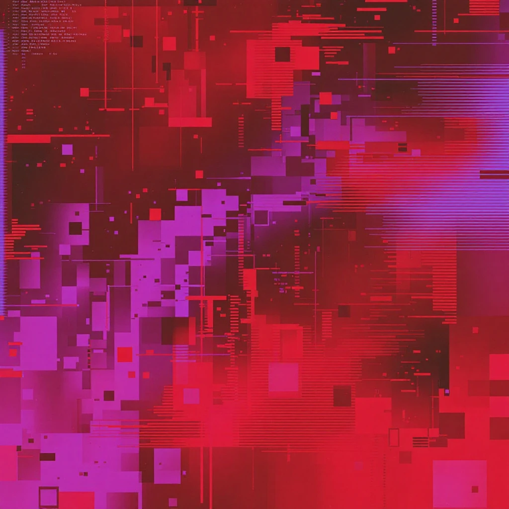 Heavy digital distortion, glitch art aesthetic, oversaturated reds and purples, corrupted data visualization, pixelation artifacts, analog interference patterns, chromatic aberration, VHS distortion, digital decay, wavelight hint interference patterns, light hint of misty slugs, many slugs, millions of slugs