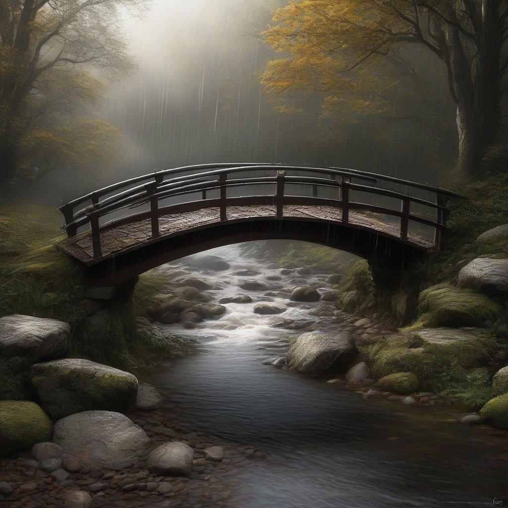 Stable Diffusion prompt: landscape: "Old bridge. The bridge exposed its bod...