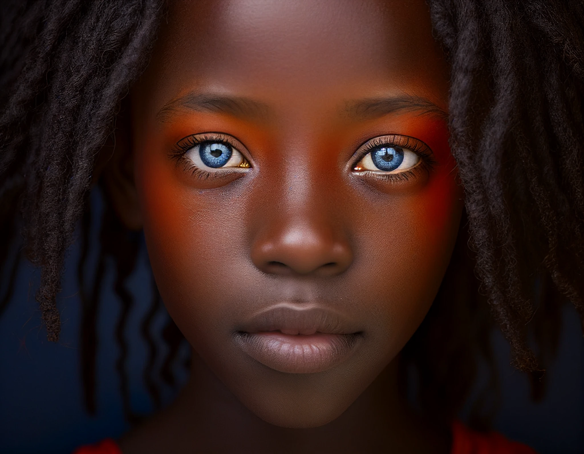 alta resolución de Fotografía ultra realistico, alto detalle en la imagen, de una hermosa adolescente africana de 15 años, donde entra la luz desde una ventana, color de piel morena, su pelo es rojo, ojos azules, tomada con una Sony fx3 1. 8, 35mm. --ar 4:3 --q 2 --uplight --v3