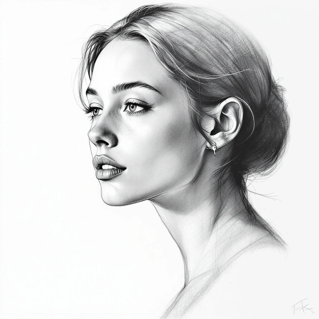graphite pencil drawing, simple, woman's face, beauty, side view, by Odilon Redon --ar 1:2 --stylize 750 --v 6. 1