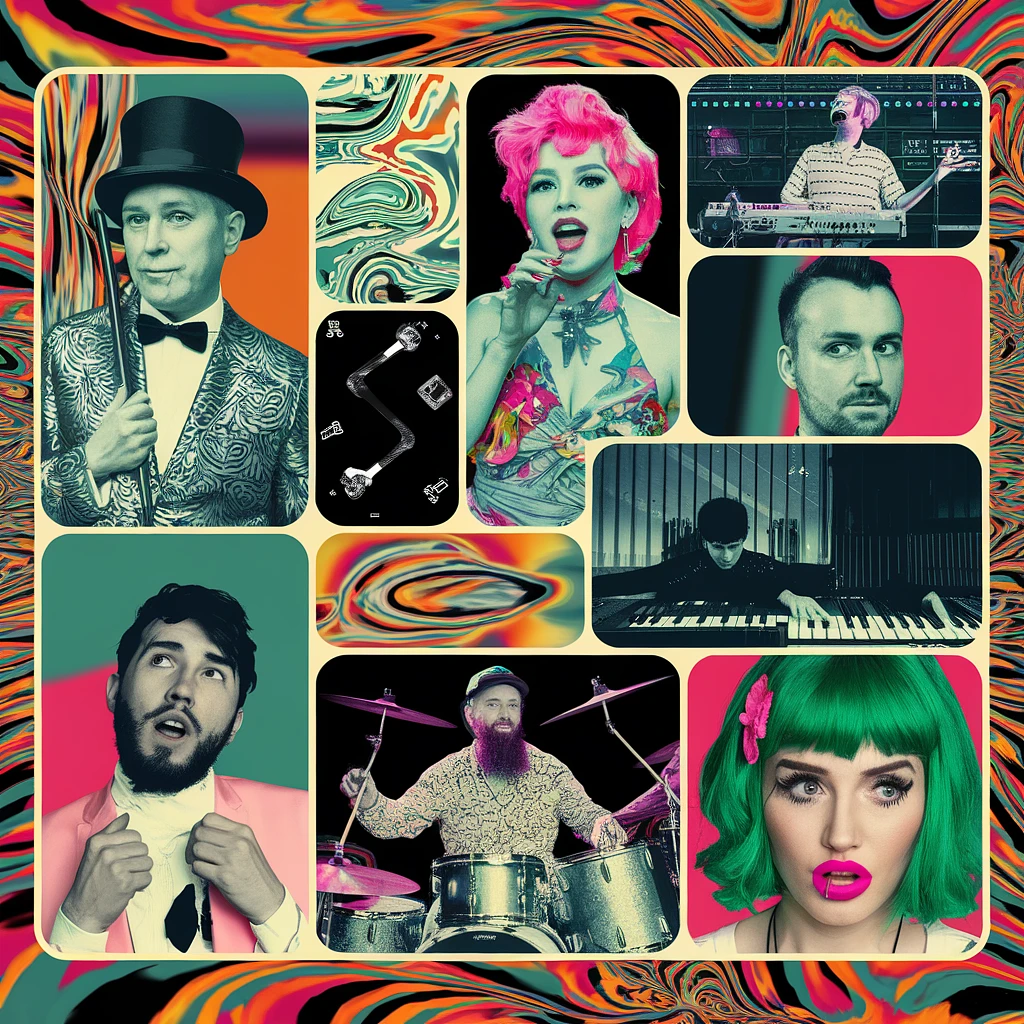 experimental, experimental music, experimental video, new media, video art, strange, weird, trippy, if you high, surreal, avant garde, variety show , psych, psychedelic, psychedelia, psy art, cartoon, collage, video collage, underground, no audience, collab, collaboration, noise, synth, synth music, video synth, glitch --ar 4:3 -