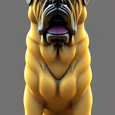 a english mastiff dog standing in a room with a pink and blue background, a character portrait by Lois van Baarle, cgsociety, sots art, synthwave, quantum wavetracing, concept art