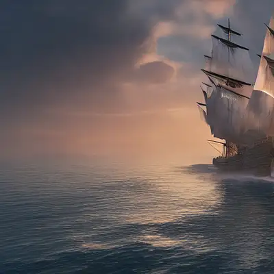 Photo of a ultra realistic sailing ship, dramatic light, pale sunrise, cinematic lighting, battered, low angle, trending on artstation, 4k, hyper realistic, focused, extreme details, unreal engine 5, cinematic, masterpiece, art by studio ghibli, intricate artwork by john william turner