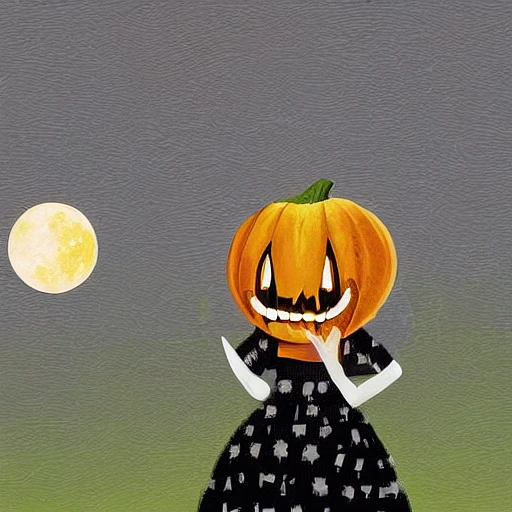 Digital art pumpkin headed queen wearing a tight black dress being under the harvest moon, pumpkin for head, digital art
