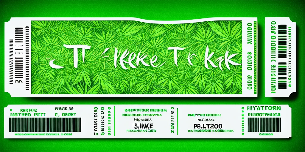 Hyper realistic printed ticket pdf, with name Miguel, with draw weed, happiness, green; 8k, intricate detail, photorealistic, realistic light, psychedelic photography ; 8k, photorealistic, realistic light
