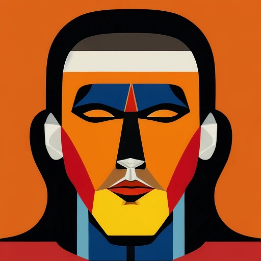 *"A modernist abstract male face composition inspired by the cubist style, with geometric shapes in shades of orange, red, black, yellow and blue. Includes soft textures and a worn background, with fragmented and stylized parts of the human face. The design is balanced and artistic, with a fusion of lines, shadows and overlapping layers, evoking a feeling of introspection and creativity. "*
