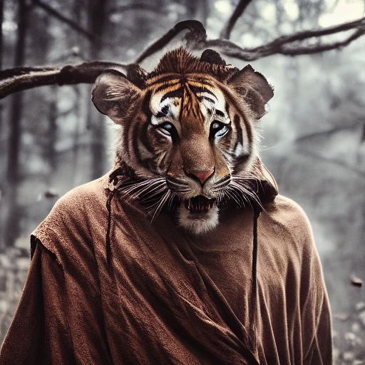 cinematic film still awardwinning photo tiger, rust, epic, wearing cultist cloak, full body . shallow depth of field, vignette, highly detailed, high budget, bokeh . shallow depth of field, vignette, highly detailed, high budget, bokeh, cinemascope, moody, epic, gorgeous, film grain, grainy