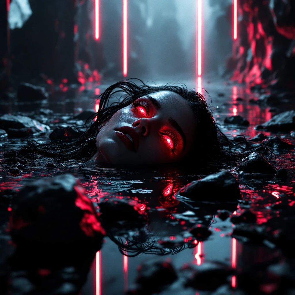 Darkwave, synthwave, many heavy reflective floors and other objects. A very beautiful head of a gorgeous woman emerges in the foreground, epically in a close-up. From the mouth downwards, the very beautiful woman is submerged in a reflective floor. This epic cover for a music album is meant to symbolize the downfall of humanity and the rise of artificial intelligence. Overall, there are many reflective objects in the environment, such as multiple stones, cyberpunk art by Maciej Kuciara, cinematic lighting, flashes, and darksynth concept art. Darkwave, synthwave, many heavy reflective floors and other objects. This epic cover for a music album is meant to symbolize the downfall of humanity and the rise of artificial intelligence. Overall, there are many reflective objects in the environment, such as multiple stones, cyberpunk art by Maciej Kuciara, cinematic lighting, flashes, and darksynth concept art Grim space skull grim reaper from space, Darkwave, synthwave, epic music album cover. glowing dead eyes of a woman, retro movie poster art, dust, dramatic lighting, artstation, 9k Red Lights , alberto seveso art, sillhouette, water ink, ink water, ink cloud, alberto seveso art, loose, intricate detail, beautiful woman, cinematic lighting, octane render, 8k render, volumetric lighting grim reaper from space, Darkwave, synthwave, epic music album cover. glowing dead eyes, SKULL, retro movie poster art, dust, dramatic lighting, artstation, 9k Red Lights , loose, intricate detail, cinematic lighting, , 8k render, grim reaper from space, Darkwave, synthwave, dance with the dead, epic music album cover. glowing dead eyes, SKULL, 80s retro movie poster art, dust, dramatic lighting, artstation, 9k Red Lights , loose, intricate detail, cinematic lighting, , 8k render, grim reaper from space, Darkwave, synthwave, cyberpunk, dance with the dead, epic music album cover. glowing dead eyes, SKULL, cyberpunk art by Maciej Kuciara, 80s retro movie poster art, dust, dramatic lighting, artstation, 9k Red Lights , loose, intricate detail, cinematic lighting, , 8k render,