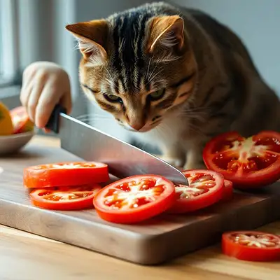 A highly detailed and realistic brown cat with soft, well-groomed fur, wearing a stylish black leather jacket with silver zippers and an American flag patch on the sleeve. The cat also wears vintage aviator goggles on its forehead. It stands on its hind legs in a cozy, rustic kitchen with wooden cabinets, shelves filled with spice jars, and various cooking utensils hanging on the wall. The cat is carefully cutting a fresh, bright red bell pepper on a wooden cutting board using a sharp knife. Around the cat, there are fresh vegetables like onions, zucchini, cherry tomatoes, and a bowl of green lettuce. The warm and natural lighting highlights the textures and depth, creating a cinematic, inviting atmosphere. "