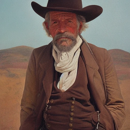 a portrait of an old cowboy in 19th century, beautiful painting with highly detailed face by tim cox